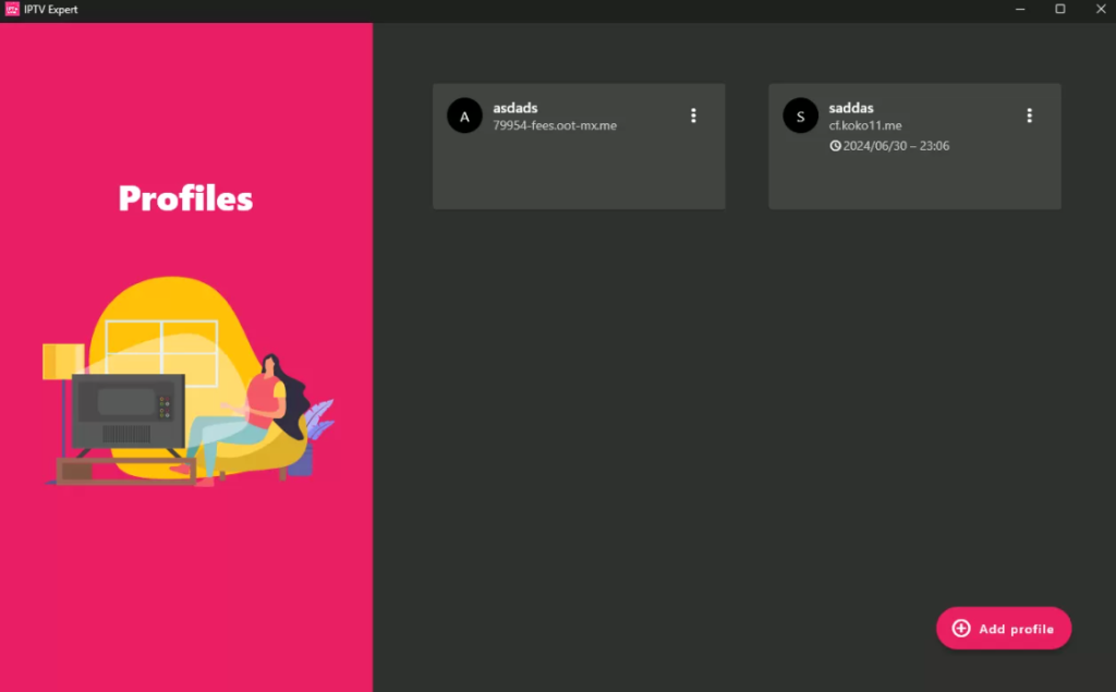 • Öppna TiviMate, den mest framstående IPTV-spelaren för Windows, och välj “Lägg till profil”. Välj “M3U” eller “Xtream Codes API” beroende på vilket format din IPTV-leverantör använder.